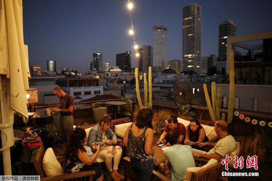 以色列特拉维夫,人们在布朗酒店的天台酒吧聚会。