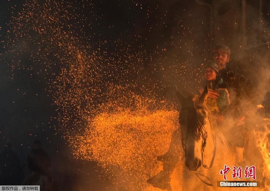 当地时间1月16日,西班牙San Bartolome De Pinares小镇,人们骑着马穿越火海,这都是为了纪念圣安东尼节。人们会在节日的前一天晚上就开始举行骑马活动。这个西班牙传统节日已有几百年历史,旨在纪念动物保护神圣安东尼,同时也有在新的一年净化和保护动物的意义。