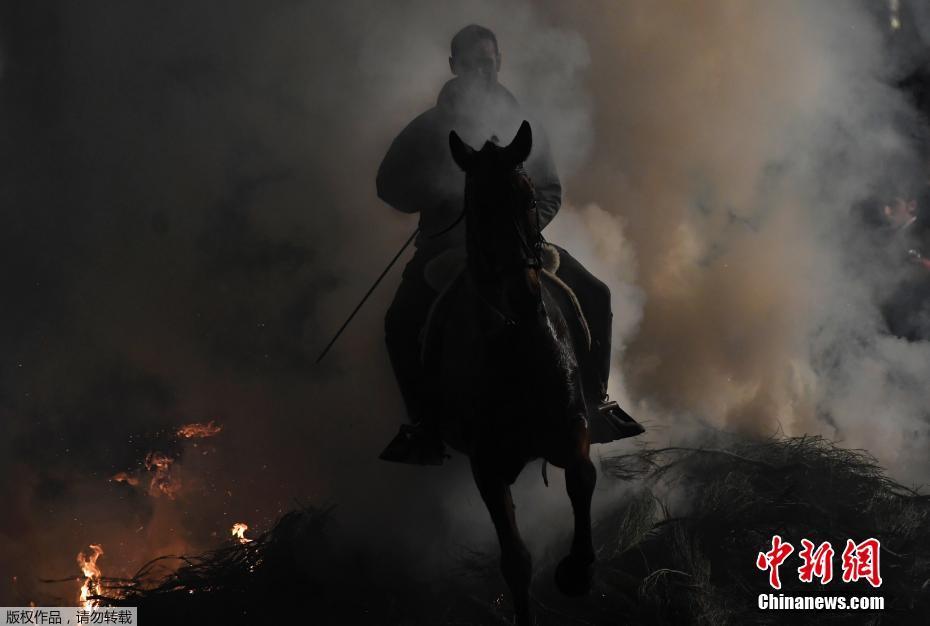 当地时间1月16日,西班牙San Bartolome De Pinares小镇,人们骑着马穿越火海,这都是为了纪念圣安东尼节。人们会在节日的前一天晚上就开始举行骑马活动。这个西班牙传统节日已有几百年历史,旨在纪念动物保护神圣安东尼,同时也有在新的一年净化和保护动物的意义。