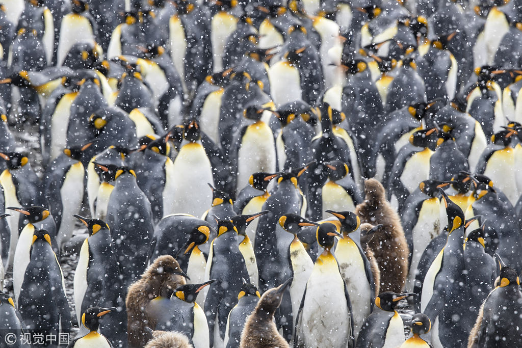 眼花缭乱!企鹅大军风雪中抱团取暖