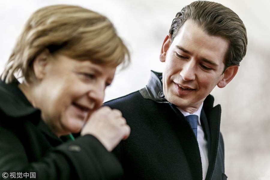 奥地利高颜值总理访德 默克尔举行仪式迎接