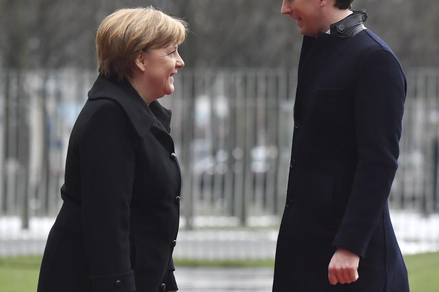 奥地利高颜值总理访德 默克尔举行仪式迎接