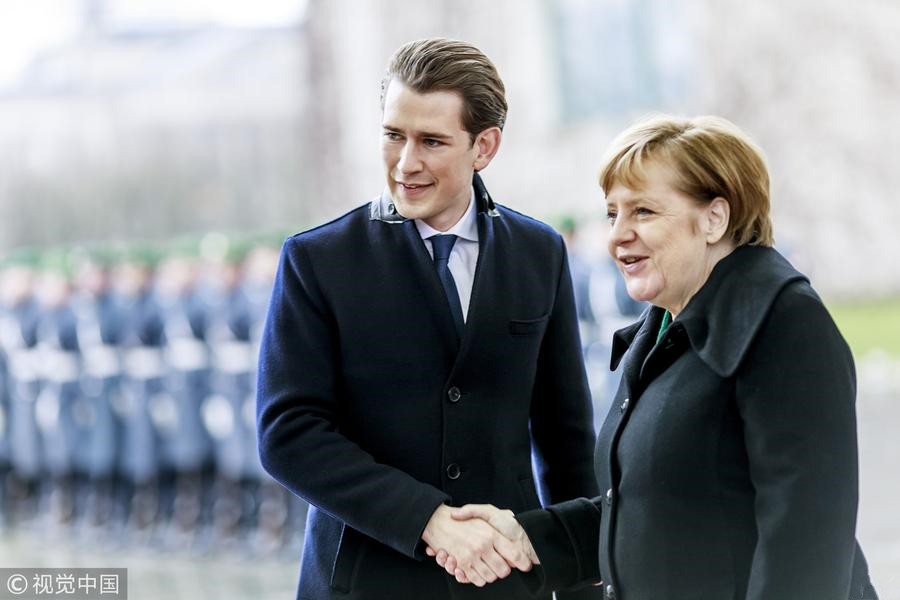奥地利高颜值总理访德 默克尔举行仪式迎接