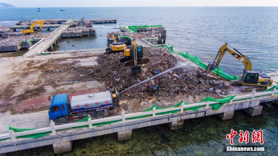 三亚未批先建的“海上餐厅”主体建筑已拆除完毕