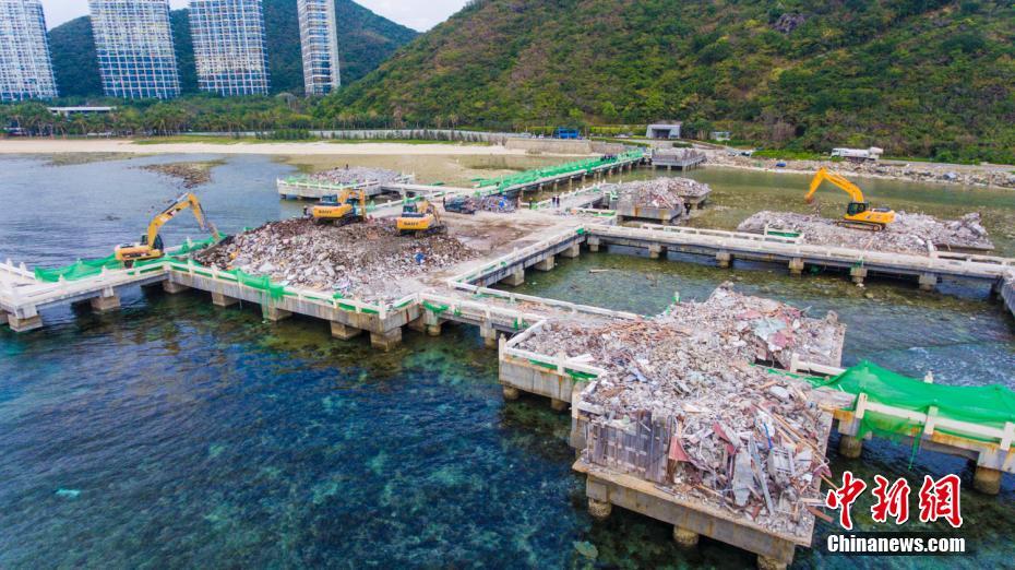 三亚未批先建的“海上餐厅”主体建筑已拆除完毕