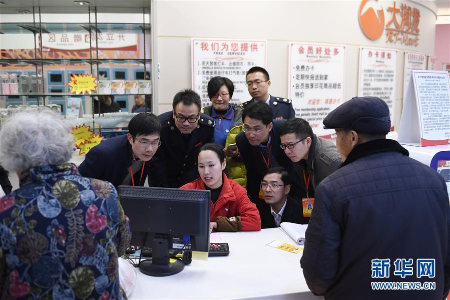 1月17日,宁波市北仑区纪委干部在一家大型超市查看发票记录,核查是否有公务消费等情况。 新华社记者黄宗治摄