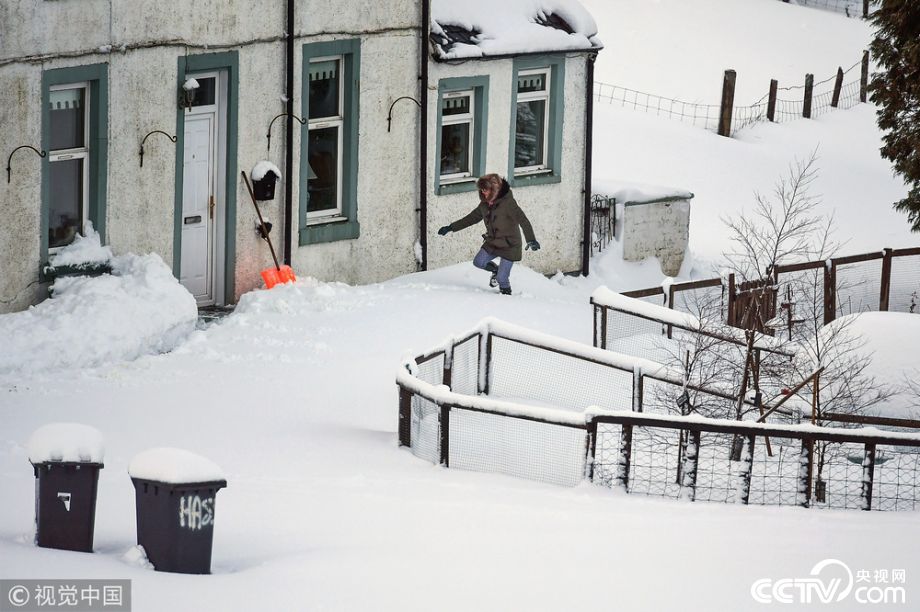 当地时间2018年1月17日,英国,当地遭遇大雪天气,民众出行困难。