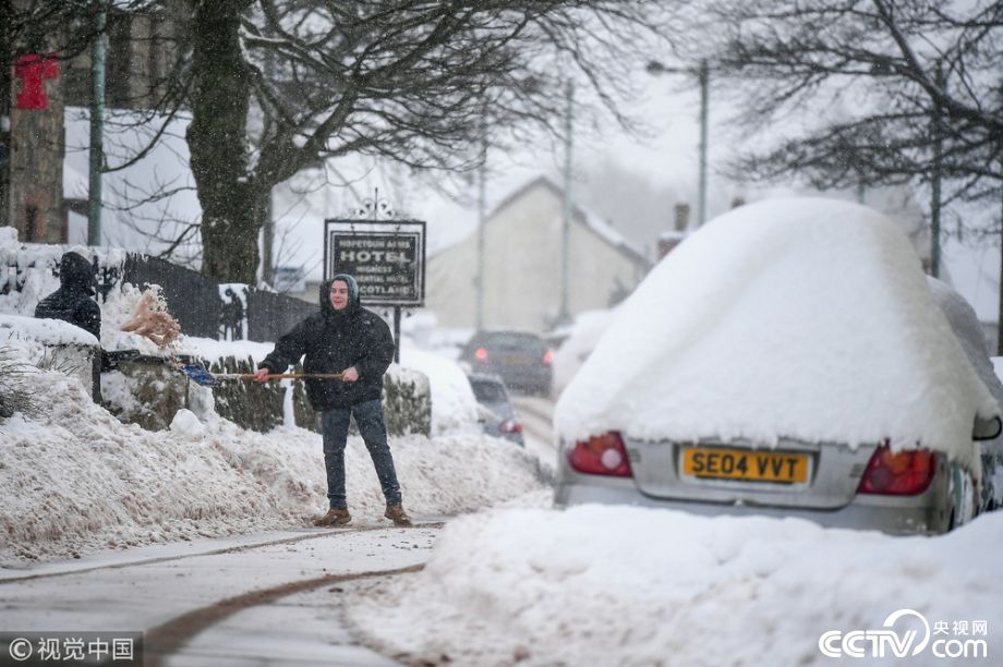 当地时间2018年1月17日,英国,当地遭遇大雪天气,民众出行困难。