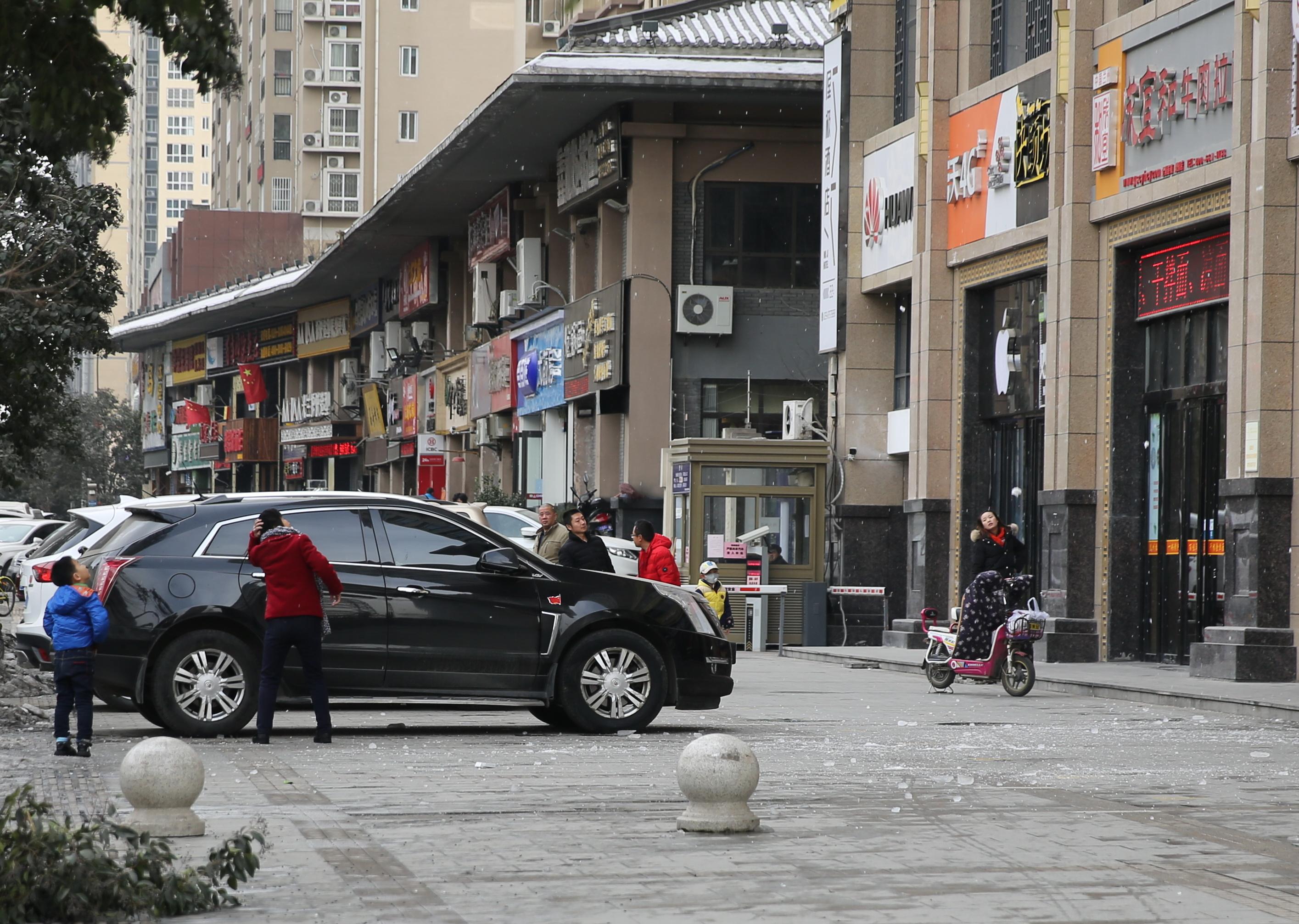 西安女子被高空冰块砸中瞬间
