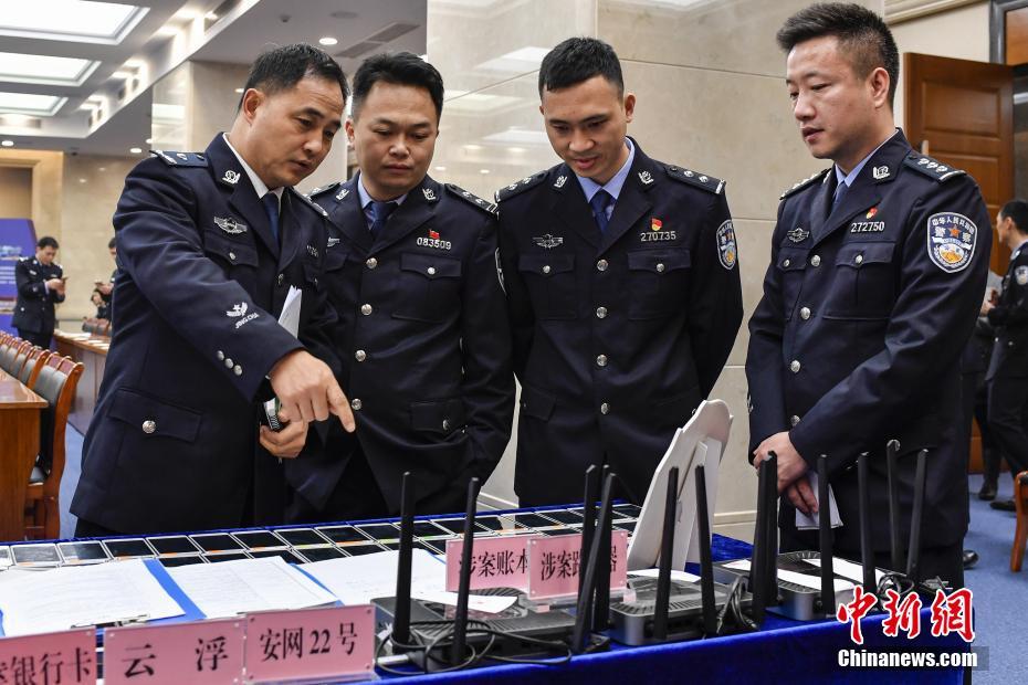 1月18日,广东省公安厅内展示的涉案物品。当日,广东省公安厅通报,“安网2017”专项行动全年共侦破网络犯罪案件4588起,抓获犯罪嫌疑人1.2万名,缴获被泄露、窃取、买卖的公民个人信息7.1亿余条。中新社记者 陈骥旻 摄​