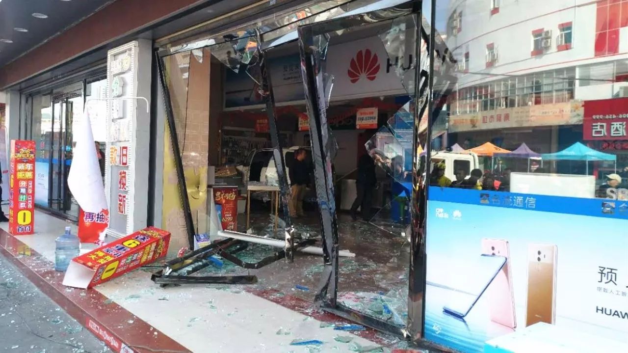 黄老板回忆说,达路小车冲进店里后,先是疯狂撞击右手边的一圈玻璃柜台,紧接着又来了个漂移,朝左侧冲去,连怼两圈展示柜后径直冲向苹果手机专柜,直到撞上收银台旁边的墙壁才缓缓停了下来。问及事发原因,司机也是迷迷糊糊了。原来,达路小车的司机姓孔,已有22年的驾龄。事发当时,孔某正准备从手机店门前的停车场出来,谁知刚放手刹车,踩了一脚油门车子瞬间飞了出去,冲上三节台阶后径直冲进手机店里。为了避让店员,孔某立即向左打了一把方向,直到撞到了墙壁车子才停了下来,所幸事故并未造成人员伤亡。