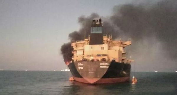 印度载3万吨柴油油轮起火 滚滚浓烟直冲云霄