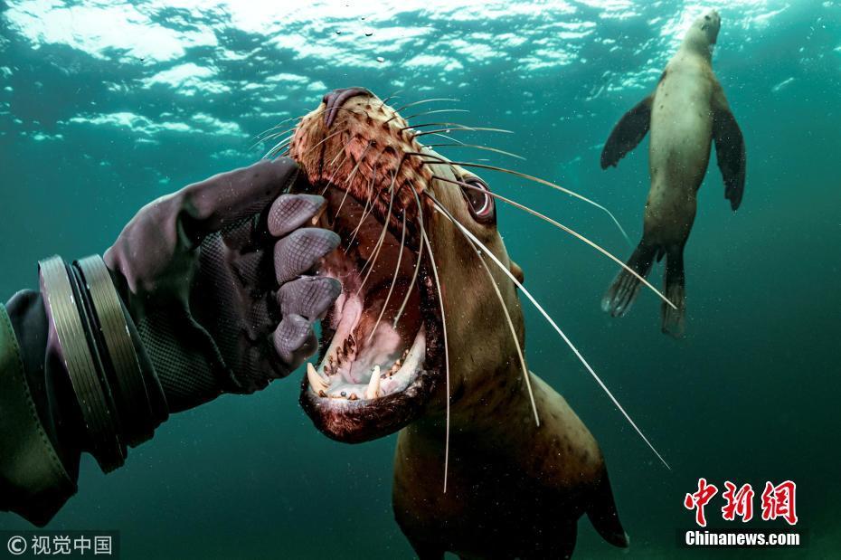 大群海狮“戏”摄影师 争相与新伙伴玩耍