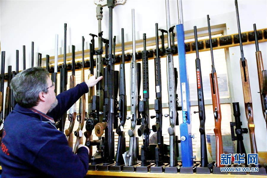 1月18日,在奥地利维也纳一家武器专卖店,店主整理货架上的枪支。据奥地利通讯社报道,截至2018年初,奥地利全国合法注册的枪支总数达1023037支。 新华社记者潘旭摄