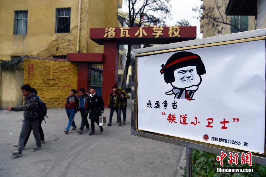 近日,在四川省凉山州冕宁火车站线路两侧出现了许多“爱路护路”宣传牌,但是画风颇为与众不同,竟然是一个个表情包,这些宣传牌是负责该段铁路安全的西昌铁路公安处针对成昆铁路属开放式线路而“量身打造”的,以此提醒注意交通安全。 钟欣 摄