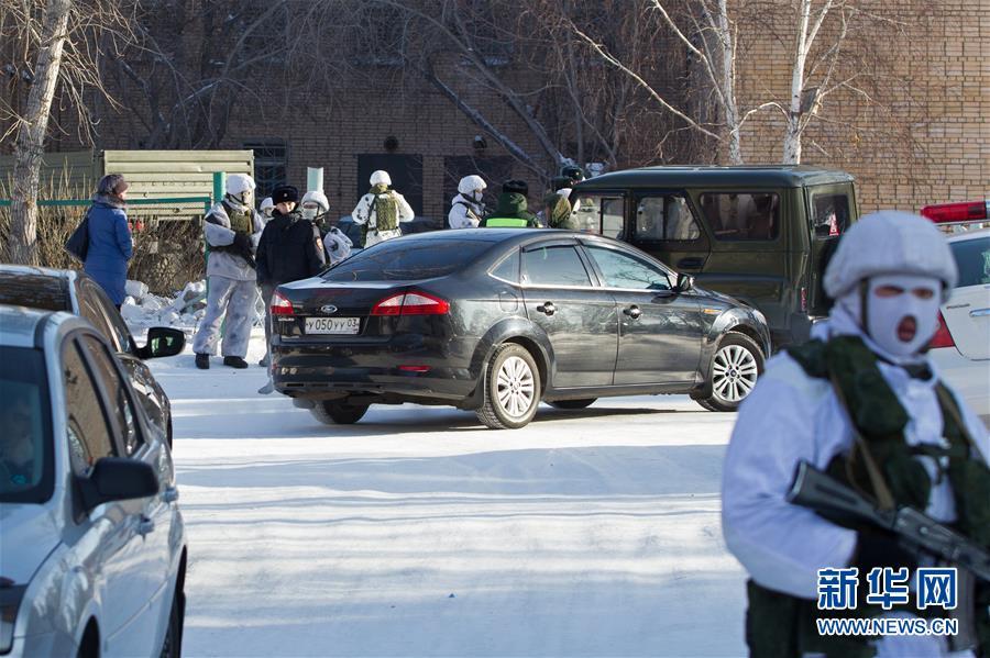 1月19日,在俄罗斯布里亚特共和国首府乌兰乌德,警方在事发学校附近调查。 新华社/卫星社