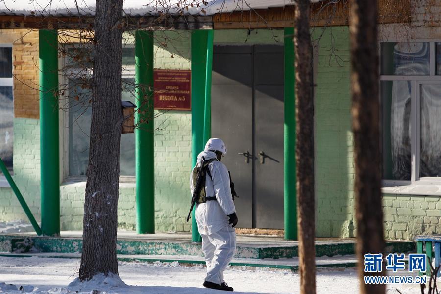 1月19日,在俄罗斯布里亚特共和国首府乌兰乌德,警方在事发学校附近调查。 新华社/卫星社