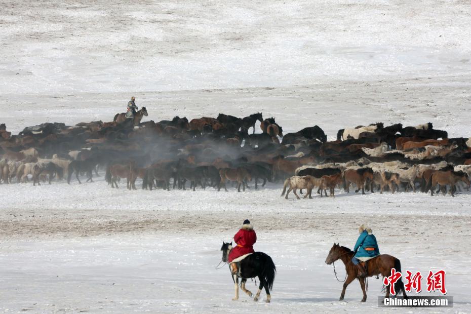 1月21日,锡林郭勒2018冰雪那达慕举行。牧场进行了驯马、套马等传统马术运动表演。中新社记者 任海霞 摄