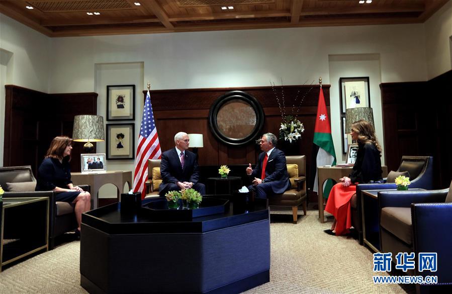1月21日,在约旦首都安曼,约旦国王阿卜杜拉二世(右二)与美国副总统彭斯(左二)会谈。约旦国王阿卜杜拉二世21日表示,期待美方能够在耶路撒冷地位问题上找到正确方向,尊重耶路撒冷的历史地位,约旦将与美方保持密切合作。新华社发(穆罕默德·阿布·古什 摄)