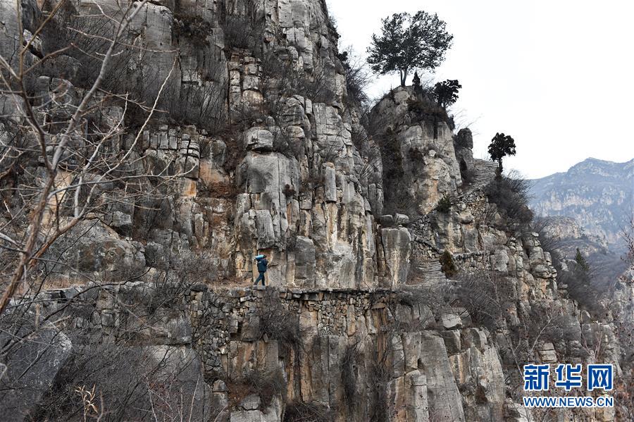 冬日的太行山上,小路被积雪覆盖,一不留神就会摔倒。