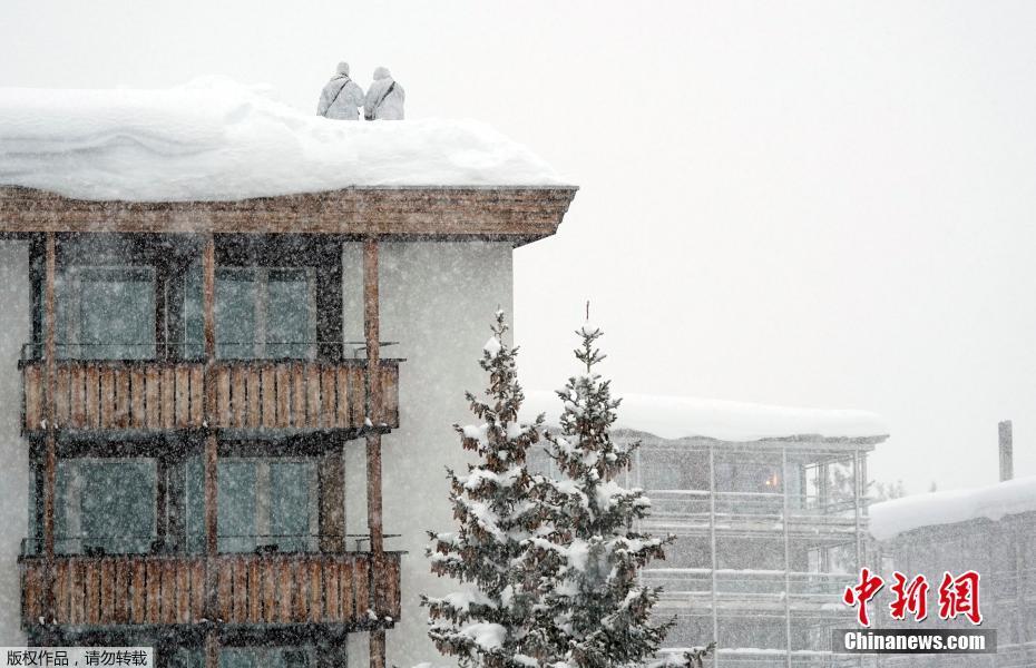 两名狙击手在达沃斯一家酒店的屋顶积雪中待命。