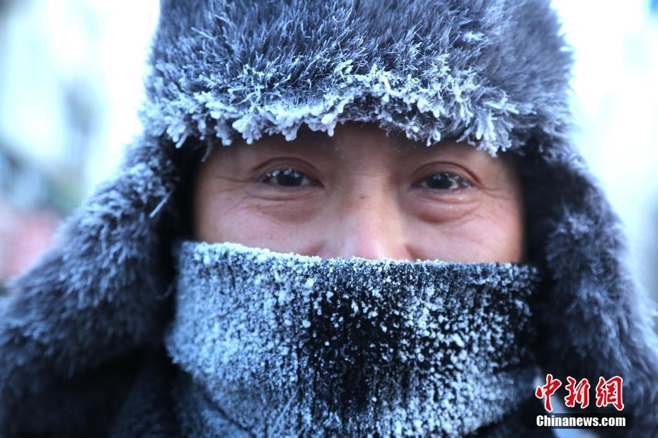 黑河出现近零下40度严寒天气 市民满脸冰霜