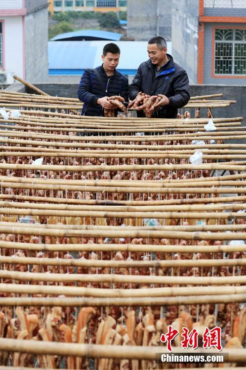 大巷村居民晾晒在楼顶的腊味,构成一道特别的风景线。