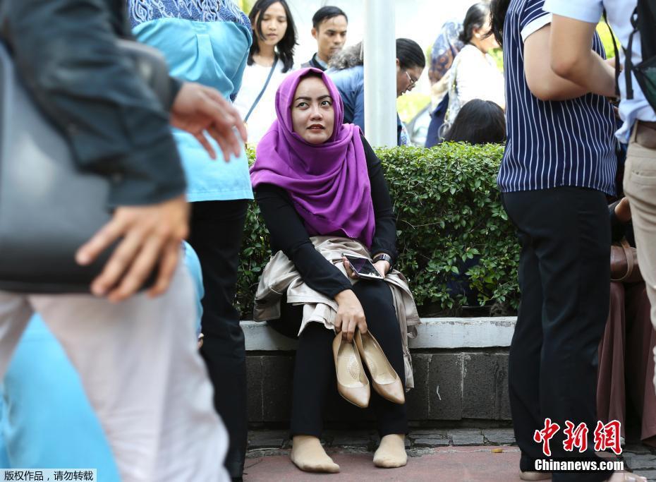 当地时间1月23日,印尼首都雅加达民众在建筑外避难。据印度尼西亚气象、气候和地球物理局消息,印尼万丹省南部海域23日发生6.4级地震,首都雅加达震感强烈。