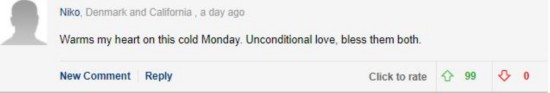 网友Niko:“在这个冰冷的周一,他们之间无条件的爱让我感觉到了温暖。祝福他们。”