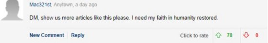 网友Mac321st:“请多写些这样的报道。他们的故事让我重拾对人性的信心。”