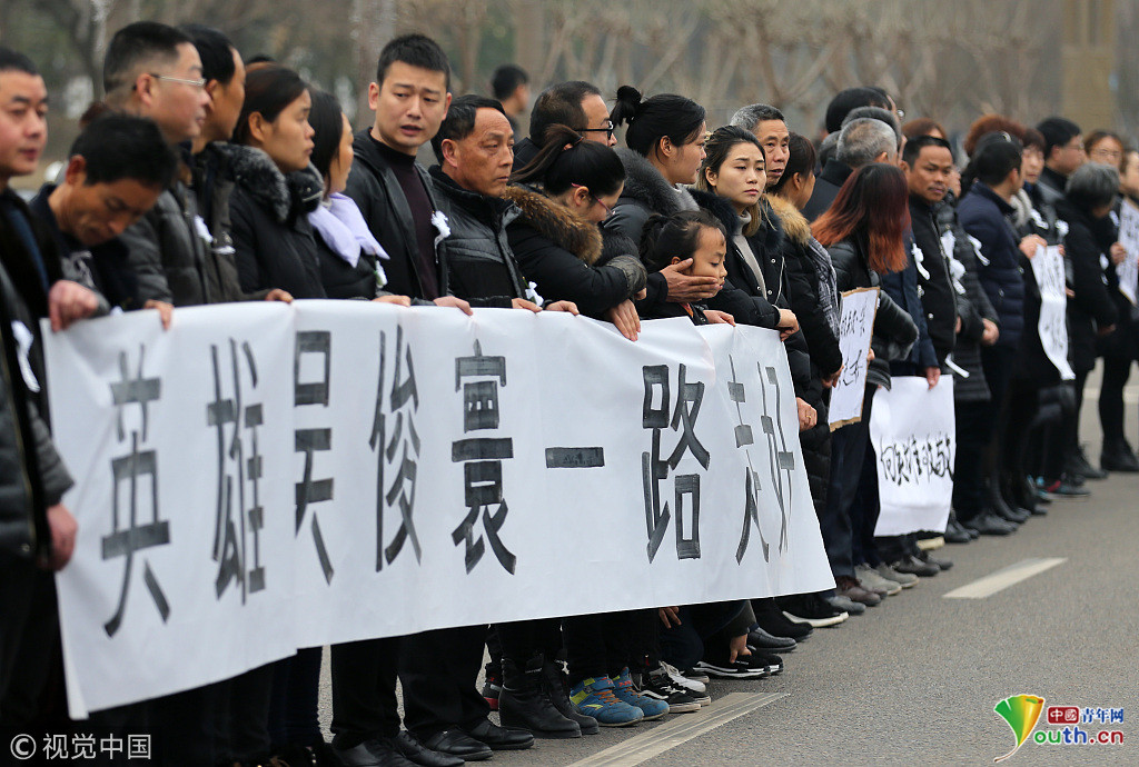 吴俊寰是广元人,遗体告别仪式后,英雄的骨灰将送回广元。10时40分左右,成都商报客户端记者看到,在威远县殡仪馆至蓉遵高速威远南收费站约2公里的道路上,上万干部和群众站满道路两旁,都等着送英雄最后一程。现场出租车也鸣笛送行,群众以各种方式“让英雄一路走好”。