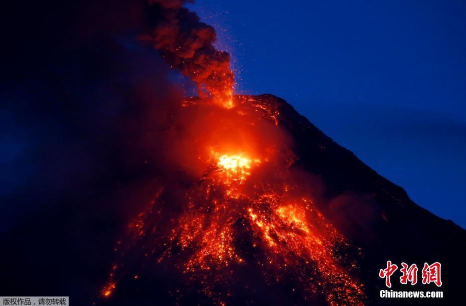 菲律宾马荣火山岩浆喷射 四万人已紧急疏散