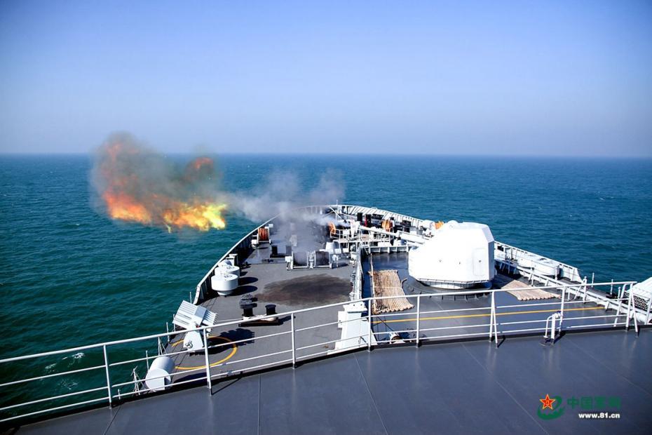 井冈山舰主炮对海射击。刘健 摄 图片来源:中国军网