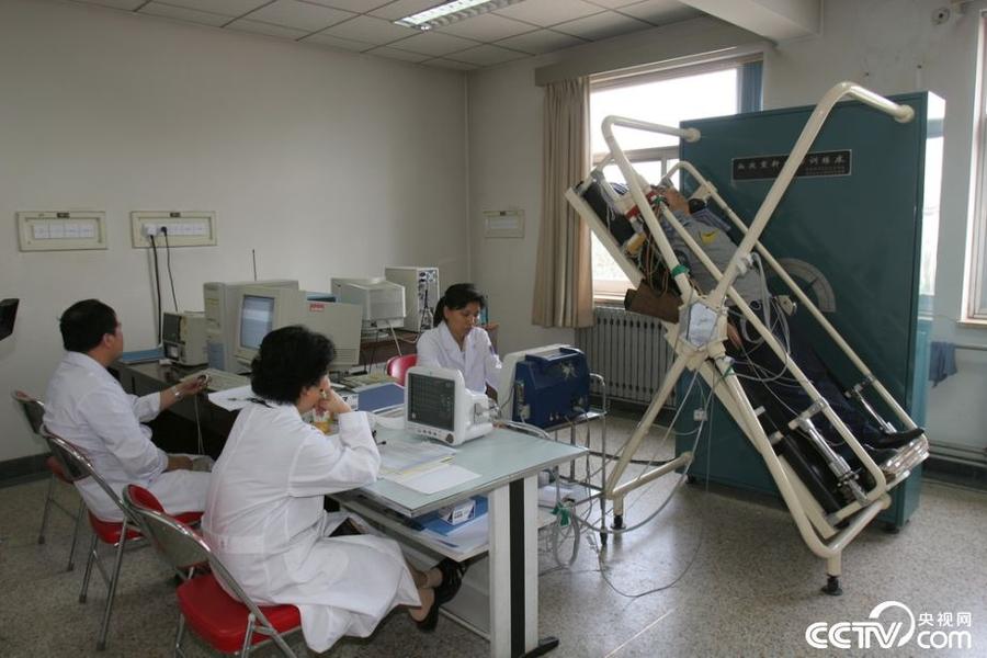 2002年2月22日,航天员进行血液重新分布训练。摄影:朱九通