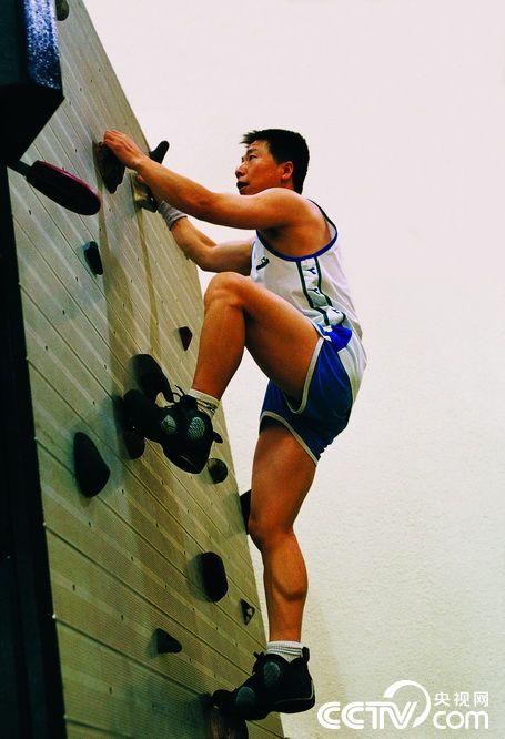 2003年,杨利伟在航天员大队体训管进行攀岩训练。摄影:朱九通