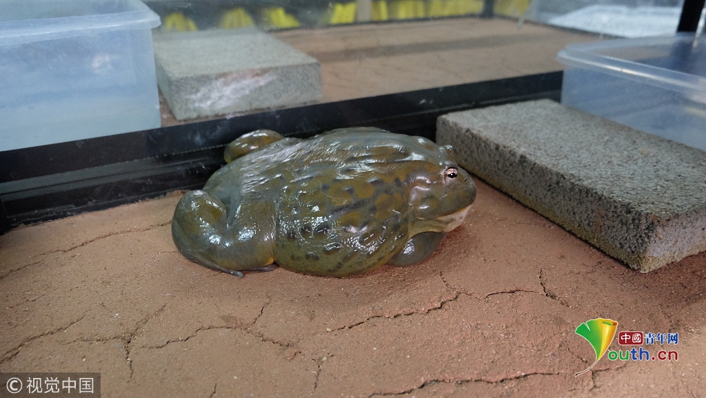 图为一只非洲牛蛙的种蛙,曾有人出价两万元,李舒都没有卖。