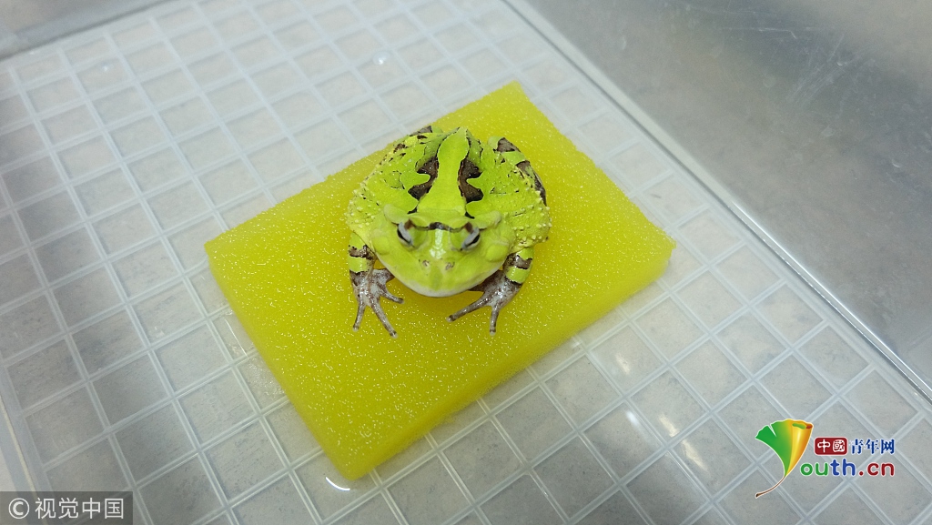 角蛙是全世界最普遍的宠物蛙,它们因无所畏惧的个性和独特的捕食方式而闻名。角蛙有一个极其贪婪的胃口,只要比自己嘴巴小的食物,它们都会义无反顾的吞下,而它们的嘴,占到了自己身体长度的一半以上!