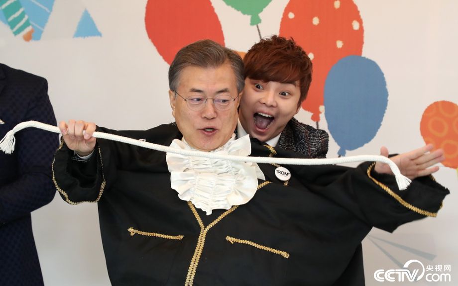 文在寅66岁生日访问儿童之家 童心大发变魔术
