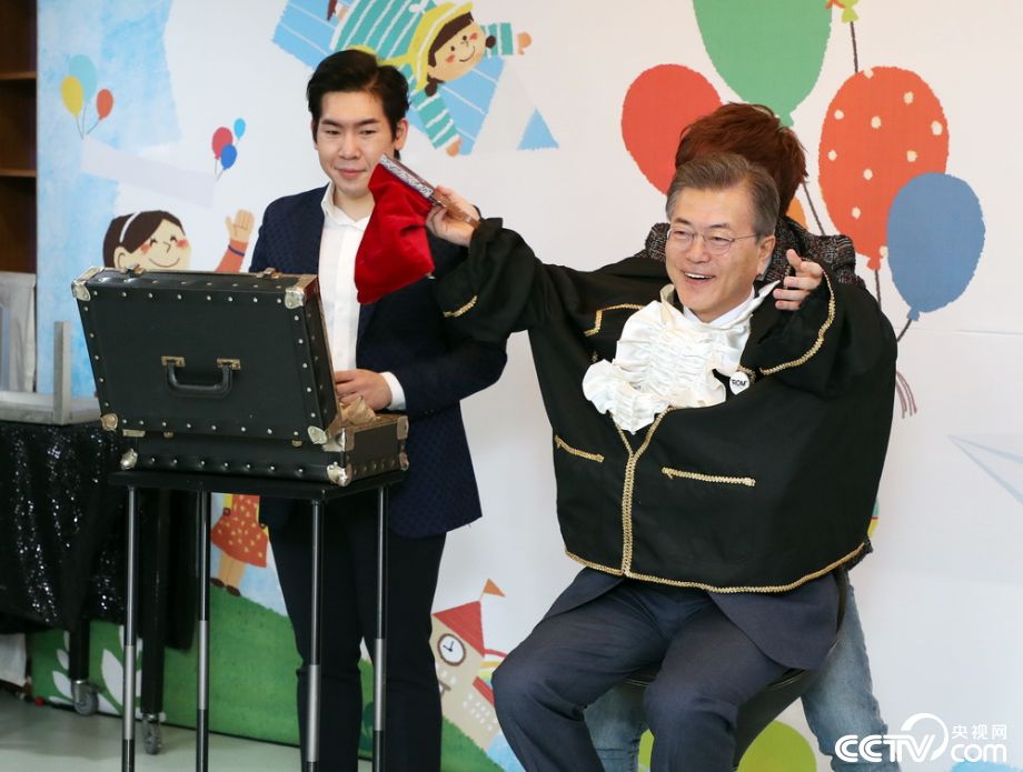 文在寅66岁生日访问儿童之家 童心大发变魔术