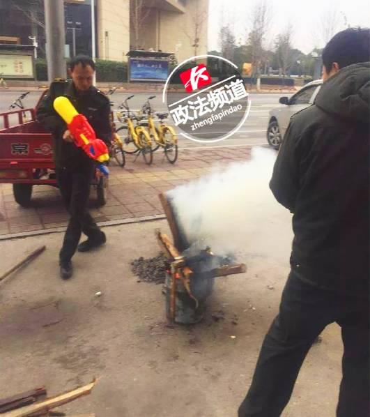 城管执法新武器走红 持水枪灭火把摊贩都逗乐