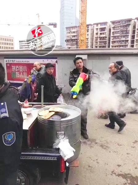 城管执法新武器走红 持水枪灭火把摊贩都逗乐