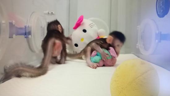 中科院神经科学研究所非人灵长类研究平台主任孙强介绍,在成长到六个月之后,“中中”和“华华”就会被送到猴群之中,观察其在群体生活中的状况。