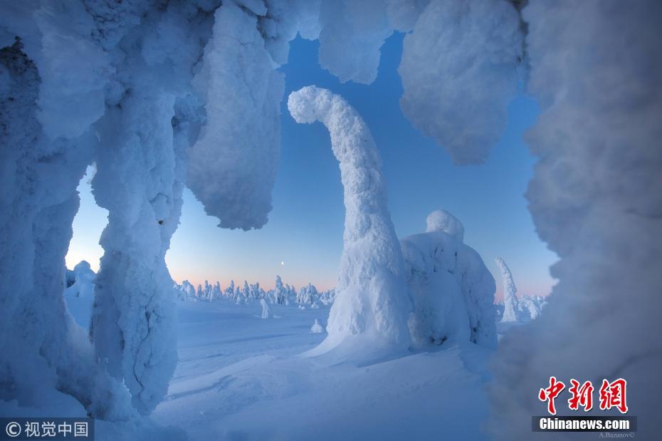 1月24日讯(具体拍摄时间不详),摄影师Bazanov Andrew Sergeevich跋涉1000公里来到位于芬兰的里斯图里(Riisitunturi)国家公园,拍摄了一系列树木被大雪覆盖后的极致景观,这些奇异的照片乍一看像是外星上的场景,十分震撼。照片是大雪过后在北极圈附近拍摄的,树枝的蜿蜒被施加雪花的“魔法”,看起来像是火山爆发时被冻结的奇绝场景。那里气温低至零下40摄氏度,在极端严寒下,冰雪可以覆盖一切。 图片来源:视觉中国