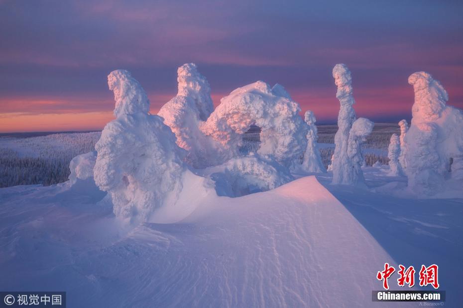 1月24日讯(具体拍摄时间不详),摄影师Bazanov Andrew Sergeevich跋涉1000公里来到位于芬兰的里斯图里(Riisitunturi)国家公园,拍摄了一系列树木被大雪覆盖后的极致景观,这些奇异的照片乍一看像是外星上的场景,十分震撼。照片是大雪过后在北极圈附近拍摄的,树枝的蜿蜒被施加雪花的“魔法”,看起来像是火山爆发时被冻结的奇绝场景。那里气温低至零下40摄氏度,在极端严寒下,冰雪可以覆盖一切。 图片来源:视觉中国