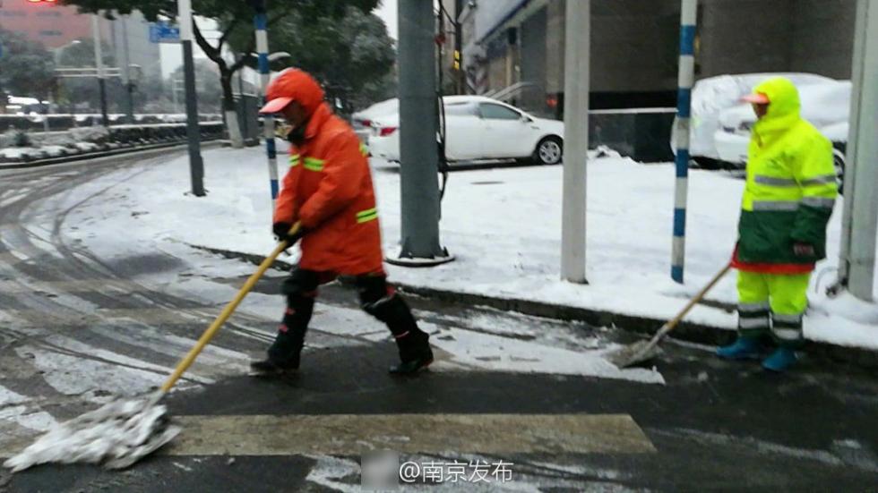 南京清雪现场。