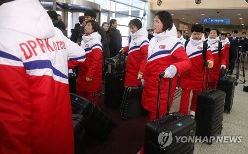 朝鲜女子冰球代表团抵韩 两国共组联队