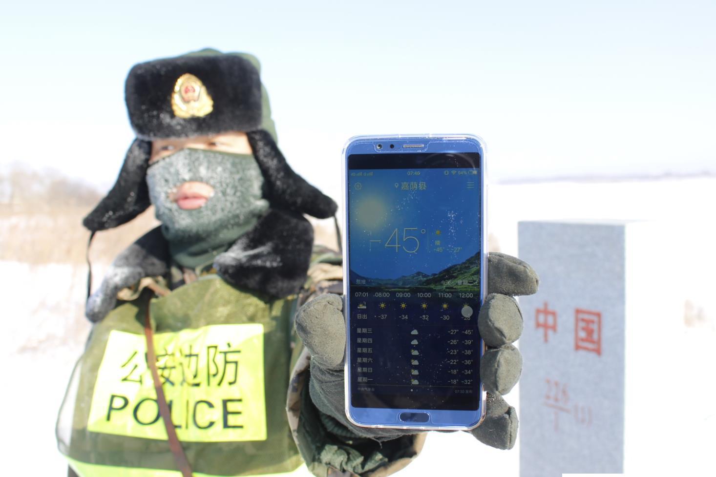 24日,黑龙江漠河最低气温达-45℃,北极边防派出所官兵冒着严寒巡逻在边境线上。极寒天气下,官兵的睫毛和脸上都是冰霜,但他们依然坚守在第一线,保护着我们的平安。向边防官兵致敬!(图片来自黑龙江边防)