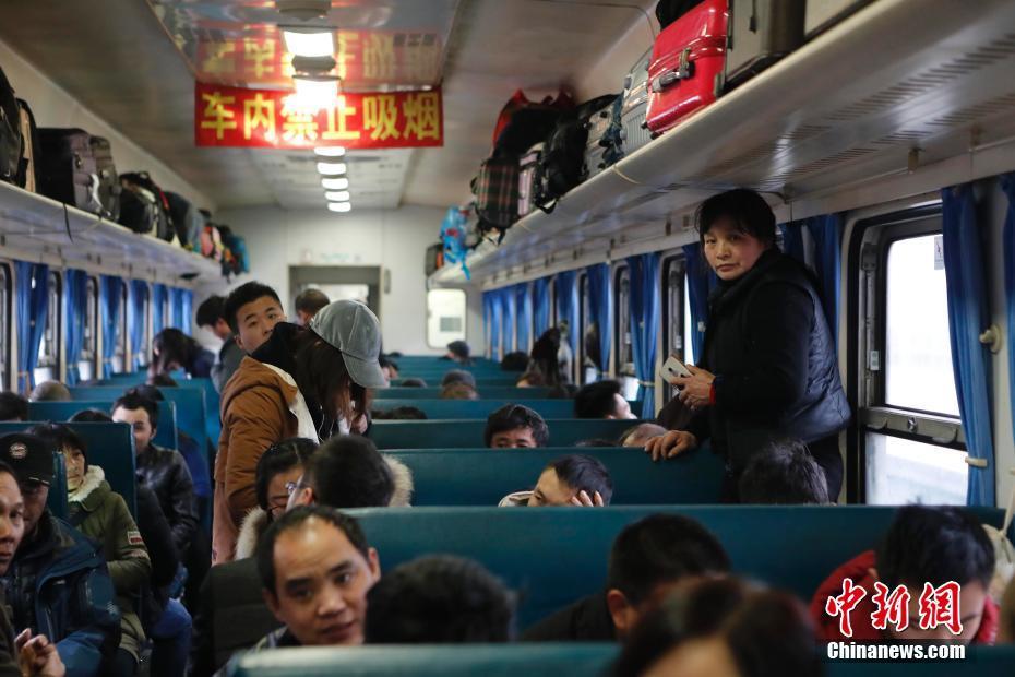 1月25日13时03分,3216次列车载着1023名旅客,从铁路上海站准点始发前往成都站。中新社记者殷立勤摄