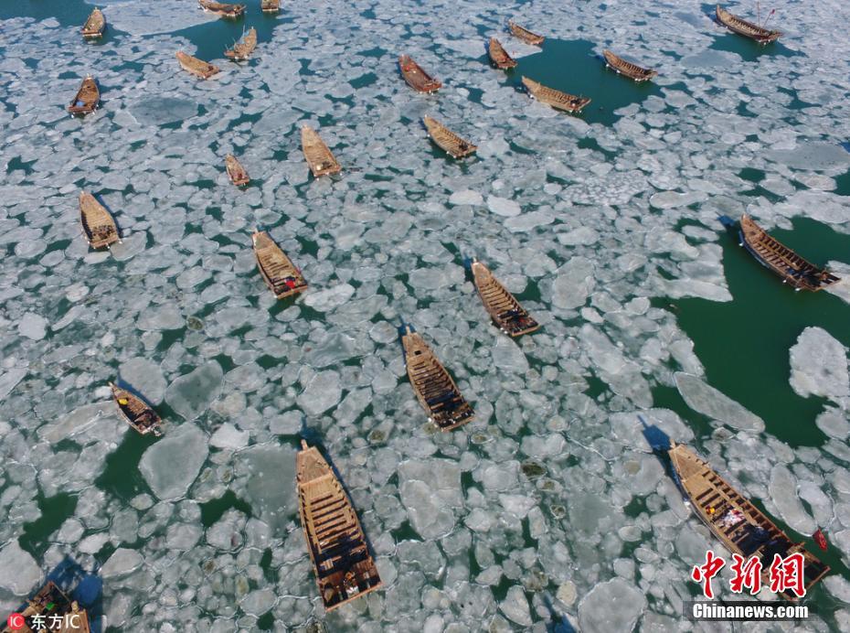 仿佛世界已静止 辽宁大批渔船被冻海面
