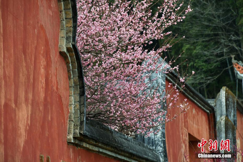 寺内梅花“破墙而出”。 中新社记者 王东明 摄